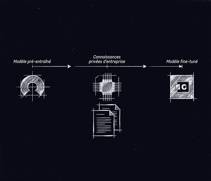 Le fine-tuning consiste à adapter un modèle pré-entraîné à des tâches ou à des cas d’utilisation spécifiques. Nous réalisons du fine-tuning sur-mesure, adapté à votre société lorsque nous estimons lors de la phase d’audit que c’est nécessaire. C’est un processus long, plus couteux qu’un simple RAG, mais qui peut, dans certaines situations, améliorer drastiquement les réponses de votre LLM.